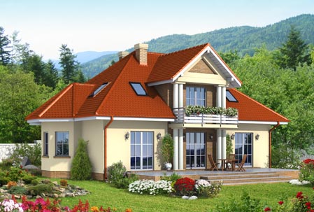 Wygodny, przestronny dom, bogata funkcja pomieszczeń. Ozdobą elewacji jest wykusz, który jest także dodatkowym miejscem na jadalnię.