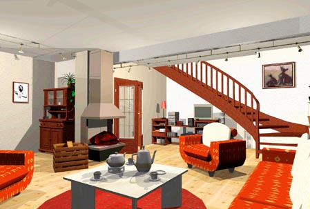 Kuchnia połączona z salonem, kominek z możliwością rozprowadzenia ciepła, drewniane schody z salonu na poddasze